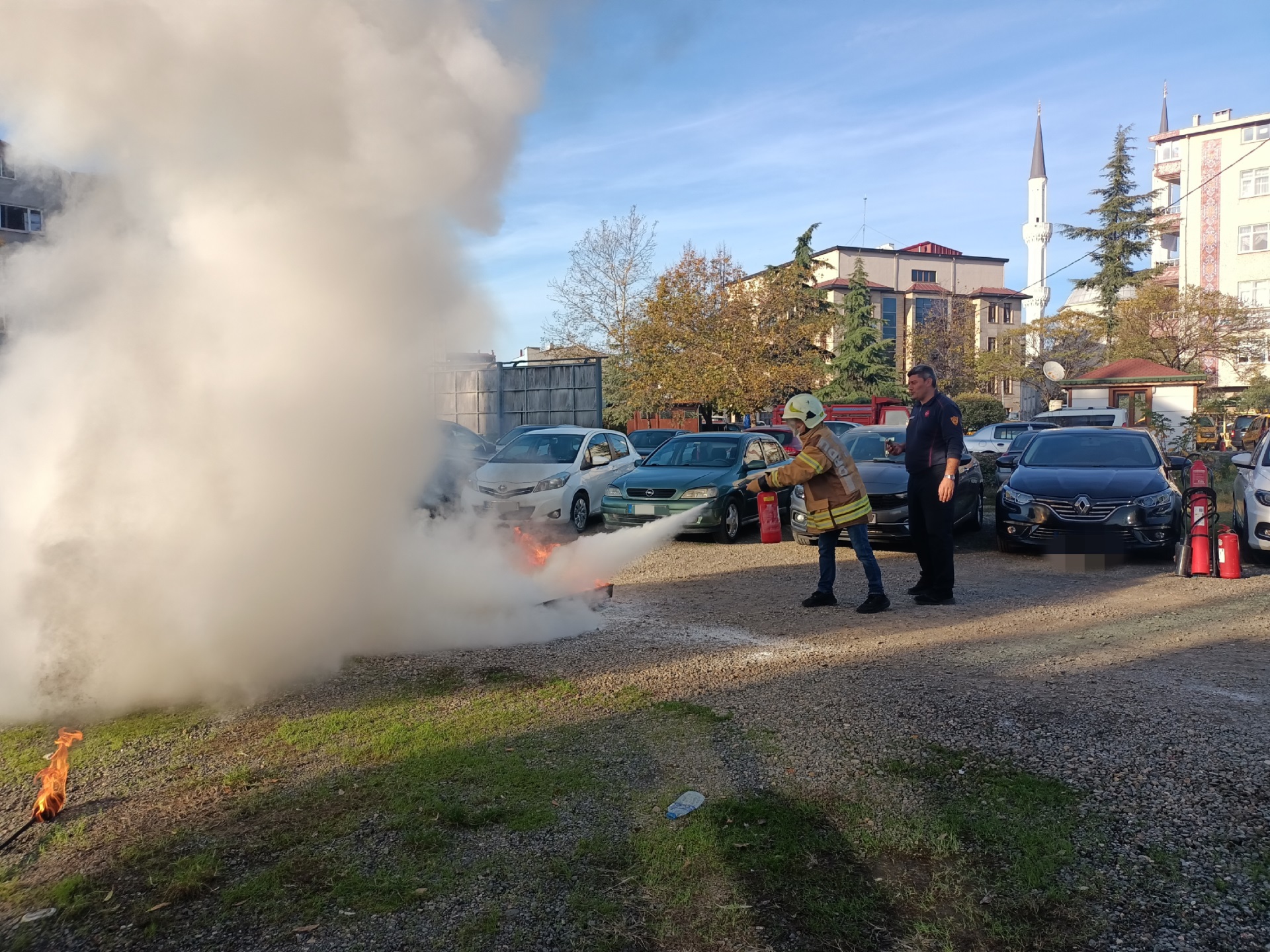Oluşturulan suni yangınlar aracılığıyla yangına doğru ve etkili müdahale teknikleri uygulamalı olarak gösterildi.