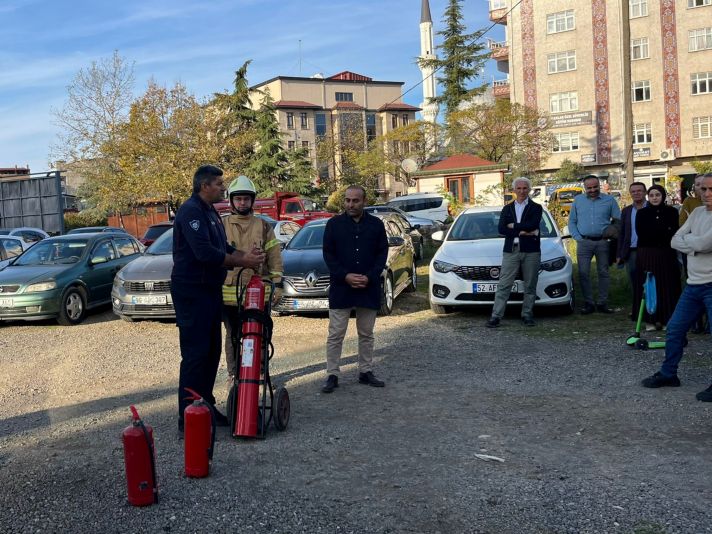 Cumhuriyet Başsavcılığımız ve Ordu Büyükşehir Belediyesi İtfaiye Daire Başkanlığı iş birliğinde sivil savunma planlarında görev alan ana ve ek binamızda görevli personele teorik ve uygulamalı eğitim verildi.